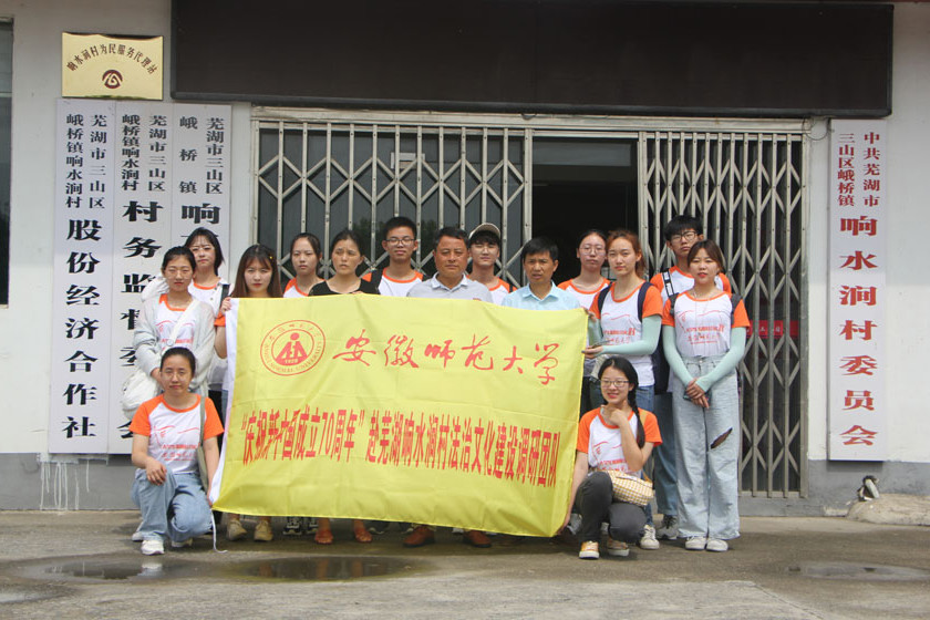 党的十九大报告指出,加大全民普法力度,建设社会主义法治文化,树立宪法法律至上、法律面前人人平等的法治理念。推动法治文化建设,是实现依法治国总目标的基本要求,是开展全民普法工作的重要支撑。为贯彻落实十九大报告中的法治要求,“庆祝新中国成立70周年”赴芜湖响水涧村法治文化建设调研团队于7月7日至7月10日奔赴响水涧村进行为期四天的调研活动通过派发问卷、采访村民、村干部等方式,深入了解响水涧村法治文化建设。
