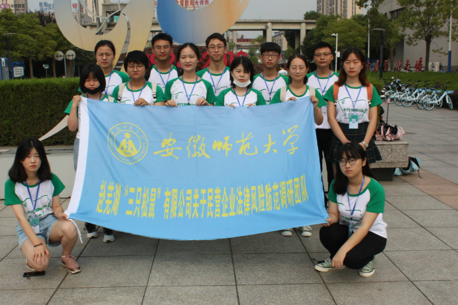 历经选题、答辩、立项、问卷及访谈提纲设计等长时间的准备,7月8日,bet36365路检测中心赴芜湖市三只松鼠有限公司关于民营企业法律风险防范调研团队踏上了暑期社会实践的征途,队长邹成广带领团队共14人携400份调查问卷掀开了这个暑假为期十天的青春新篇章。