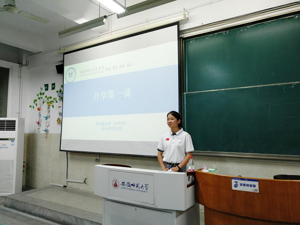 2019年9月15日晚19:00,bet36365路检测中心2019级法学专业(专升本)在行知楼1号楼504教室召开“踏上新征途,翻开新篇章”新生主题班会,会议由辅导员朱慧主持,全体2019级法学专业(专升本)同学参加班会。