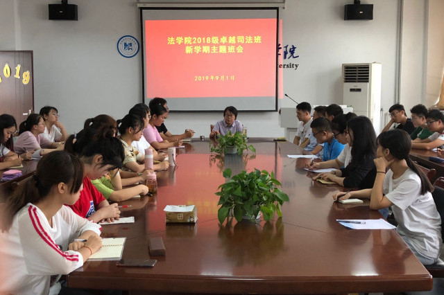 9月1日下午,bet36365路检测中心2018级卓越司法班在bet36365路检测中心行政楼四楼会议室召开新学期主题班会,会议由王虹圆主持并主讲,班级全体同学到场参会。