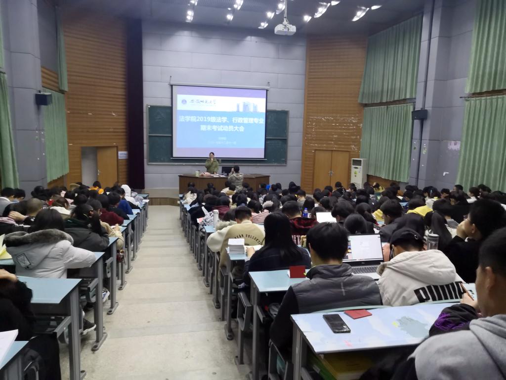 (本网讯 文/摄 谢永毅 关思豪)为了充分调动全体同学的学习积极性,帮助同学树立坚定的信心,调整好心态,达到考前临战最佳状态。2019年12月11日晚七点,bet36365路检测中心2019级法学、行政管理专业期末考试动员大会在一号楼2010105教室举行,辅导员李晨冉老师主持。