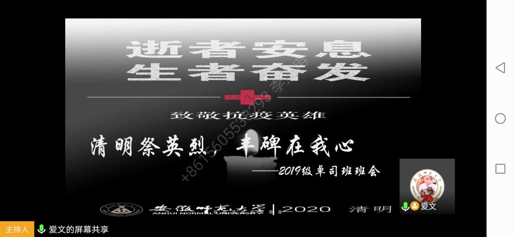 (本网讯 文/摄任英杰)我们期盼已久的春天已经到来,可有的人却留在了冬天。为缅怀在抗击新冠肺炎疫情之中牺牲的先烈和同胞,2019级卓越司法班举行“清明祭英烈,丰碑在我心”线上主题主题团日活动。活动由团支书罗文俊同学主持,2019级本科生辅导员李晨冉及全体2019卓越司法班同学参加。
