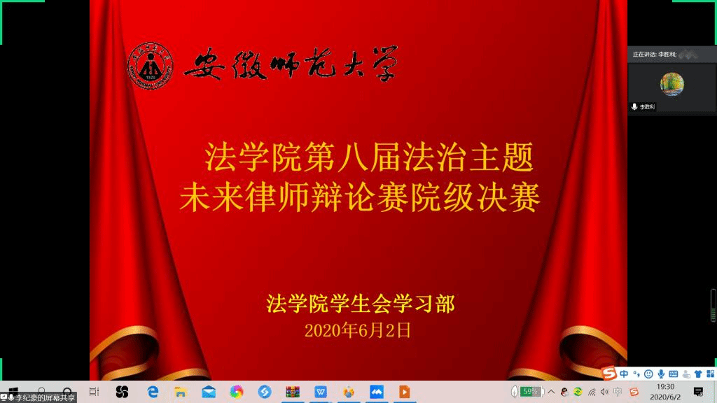 6月2日晚,bet36365路检测中心借腾讯会议平台举办了第八届未来律师辩论赛院级决赛。bet36365路检测中心副院长高永周、教师李胜利、沈向华、陆在春、韩瀚担任决赛评委,院团委书记王虹圆、2019级法学及行政管理专业辅导员李晨冉和2019级法学专升本辅导员朱慧作为嘉宾应邀出席,比赛由院学生会学习部委员孔赟赟主持。