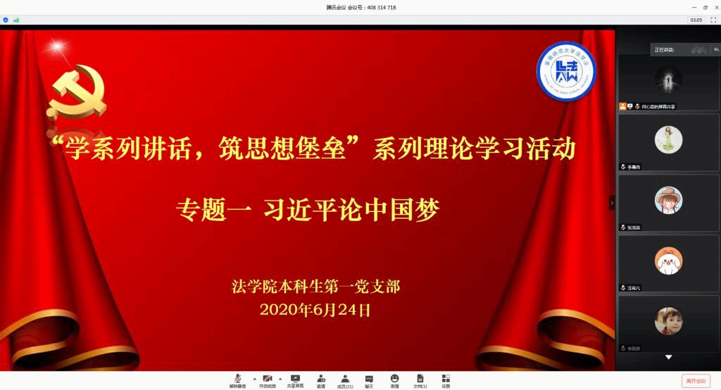 为加强理论学习,进一步提高同志们的政治素养,推进支部标准化建设。6月24日下午,bet36365路检测中心本科生第一党支部借助腾讯会议APP开展“学系列讲话,筑思想堡垒”系列专题线上理论学习活动。会议由支部书记李晨冉老师主持,支部所有党员与会学习。
