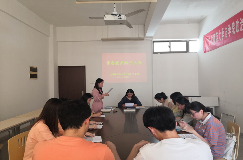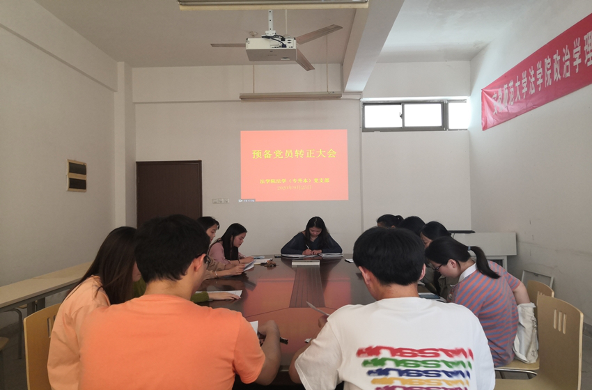 2020年9月25日下午,法学(专升本)党支部在bet36365路检测中心行政楼508召开预备党员转正大会。会议由法学(专升本)党支部书记朱慧主持,支部全体党员参加。