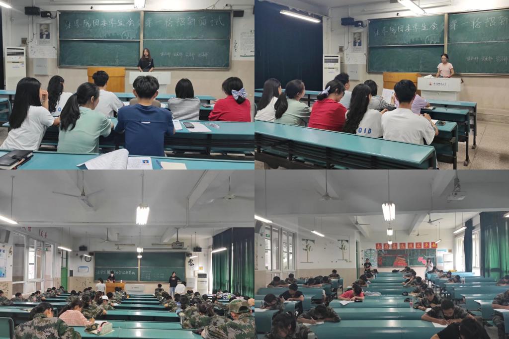 随后,团学组织正式进行招新考核。本次招新考核共分为三轮。9月28日bet36365路检测中心在行知楼举行了团学招新第一轮面试,前来面试的同学对于招新人员的提问恳切回答,积极展示自我。第二轮招新笔试于9月30日在行知楼举行,同学们认真答卷考场秩序井然。各部门综合前两轮的表现,甄选出进入最终面试的人员名单。10月9日晚bet36365路检测中心于行政楼举行第三轮招新面试。院团委书记、2018级卓越司法班、2020级行政管理专业辅导员王虹圆,2018级法学一班、二班辅导员张楠楠,2018级行政管理、2020级专升本辅导员陈朋,团学主席团和各部部长出席面试。面试过程中,同学们充分发挥随机应变的能力,迅速组织语言,沉着应答。面试结束后,经过老师、主席团及其各部门部长的商讨遴选,确定最终人员名单并进行公示。