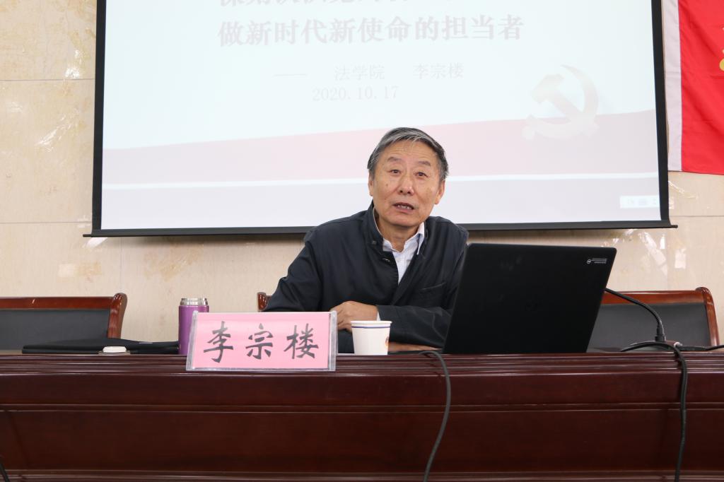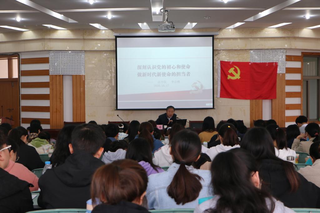 李宗楼教授以“深刻认识党的初心和使命,做新时代新使命的担当者”为主题,分别从中国共产党人初心使命的提出和党的领袖对初心使命的阐述、中国共产党近一百年坚守初心和牢记使命的历史以及如何在当前大背景下做新时代新使命的担当者三个方面展开论述。在带领学员回顾党的历史上三个里程碑事件时,李宗楼结合时事政治和热点案例为学员传达了党的性质宗旨及理想信念的具体内容。此外,他告诫青年学生,只有坚定理想信念,努力学习马克思主义和中国特色社会主义理论,始终把人民放在心中最高位置,才能肩负起新时代新使命的责任担当。