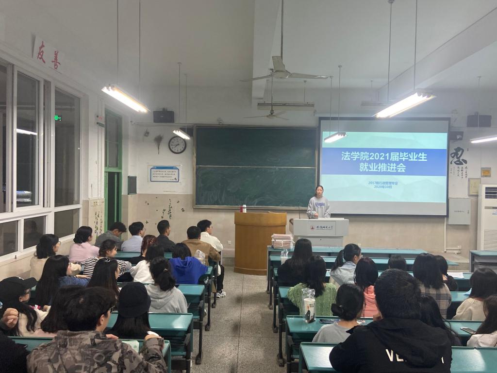 为明晰当今严峻就业形势,督促2021届毕业生把握好就业机会,2017级行政管理专业于11月2日晚七点在行知楼2020101教室举行了2021届毕业生就业推进会。会议由bet36365路检测中心辅导员朱慧主持,2017级行政管理专业全体同学参与。