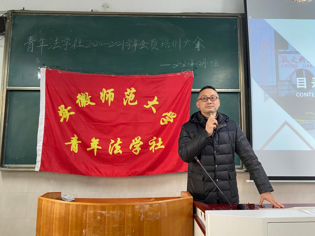 12月19日上午,青年法学社2020-2021学年会员培训在行知楼召开。青年法学社指导老师陆在春出席指导本次会议。青年法学社会长魏俊及副会长李旭,各部门部长、理事以及部分会员到场参与。会议由青年法学社活动部理事张清泉主持。