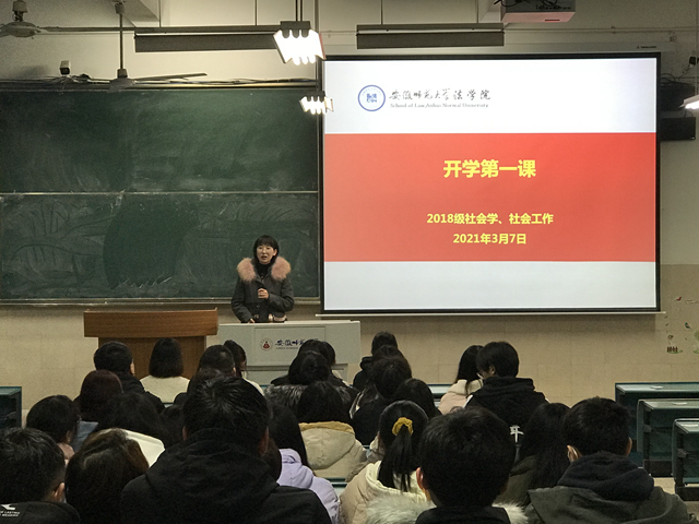 本网讯(18社会学 俞孟玥)新学期,新自我,新气象。为引导学生树立正确目标,以积极面貌迎接新学期,2018级社会学与社会工作专业于3月7日晚上8:00,在2040104教室开展“开学第一课”主题班会。本次班会由辅导员储梦凡主持开展,18社会学类班级全体同学共同参加。