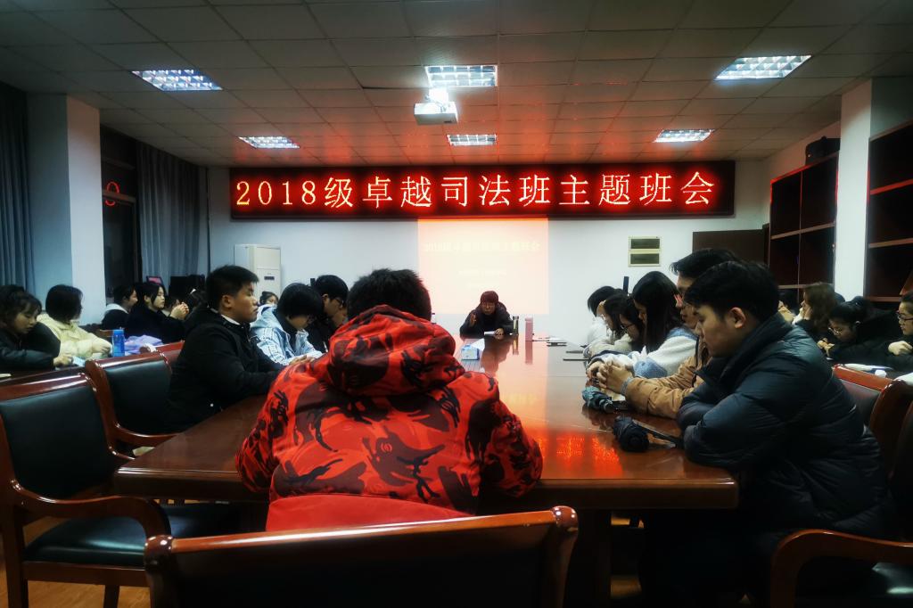 3月8日晚,18级卓越司法班在bet36365路检测中心行政楼四楼会议室召开考研动员与校园安全主题班会。会议由班级辅导员王虹圆主持,班级全体同学参加。