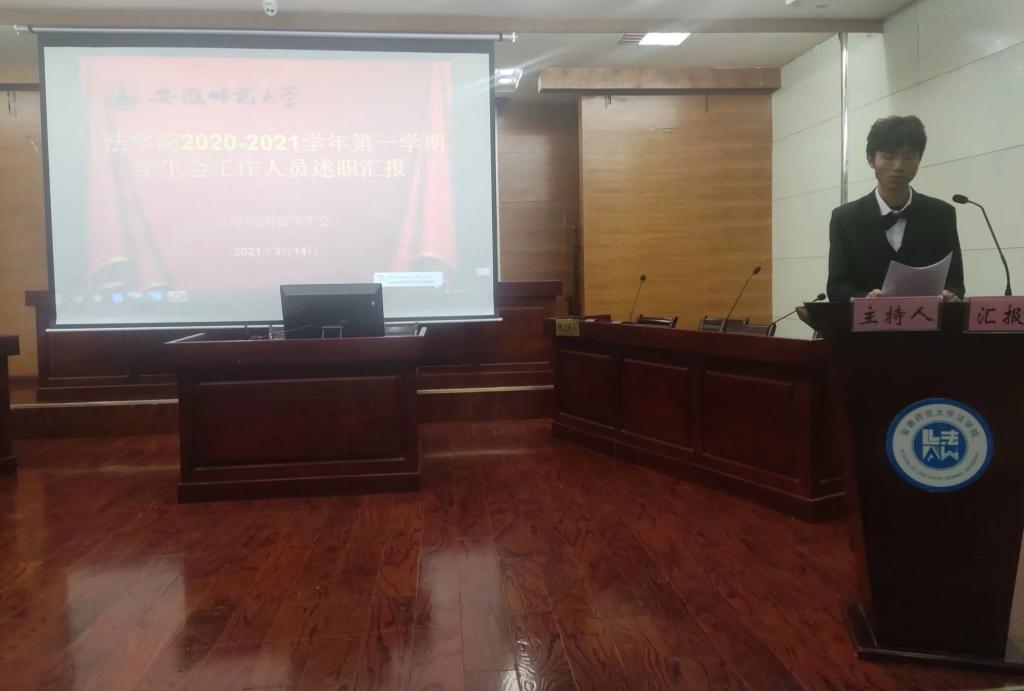 3月14日下午,学院于模拟法庭召开了院学生会工作人员述职评议大会。院团委书记王虹圆,校学生会主席成员周腾飞出席此次大会。院学生会主席团及各部门负责人,18、19级各班班长及学生代表和院学生会代表参会。本次大会由部门委员曾锦亮主持。