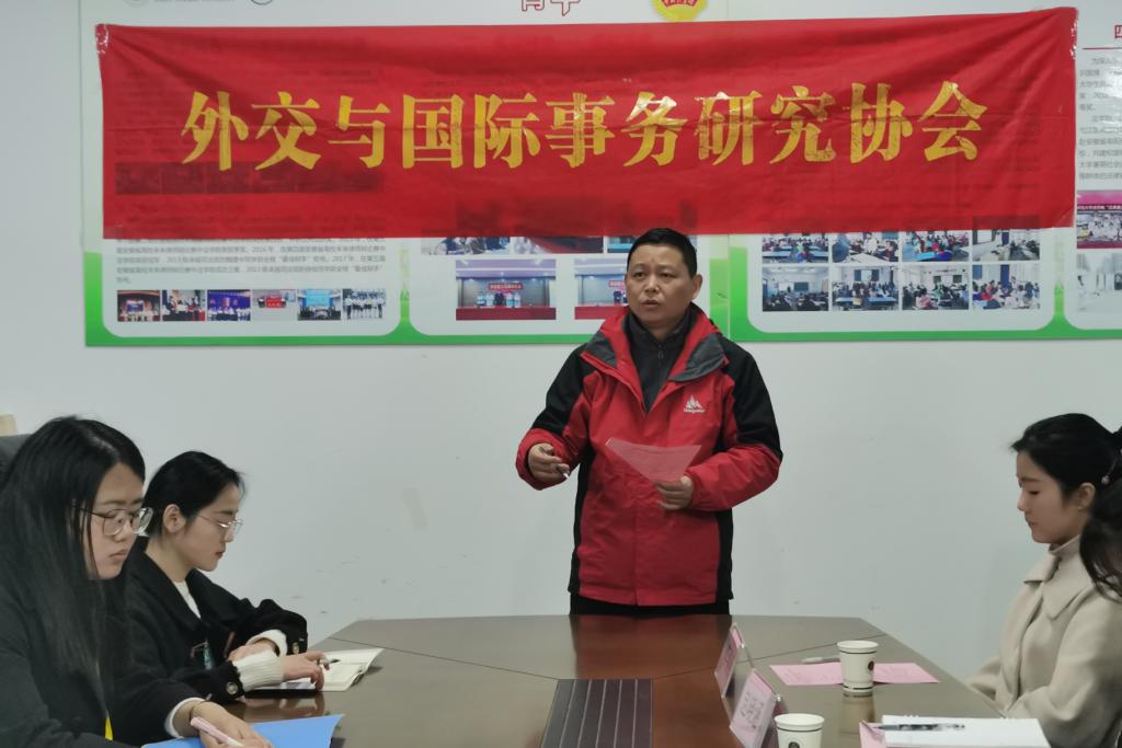 外交与国际事务研究协会于3月19日晚在bet36365路检测中心行政楼三楼学生会办公室召开2020—2021学年第二学期第一次理事大会,指导老师李路根老师受邀出席。出席此次会议的还有会长李梦辉,副会长赵晓涵、王晓玉、李春燕,各部门部长及理事。会议由宣传部胡凤仪主持。