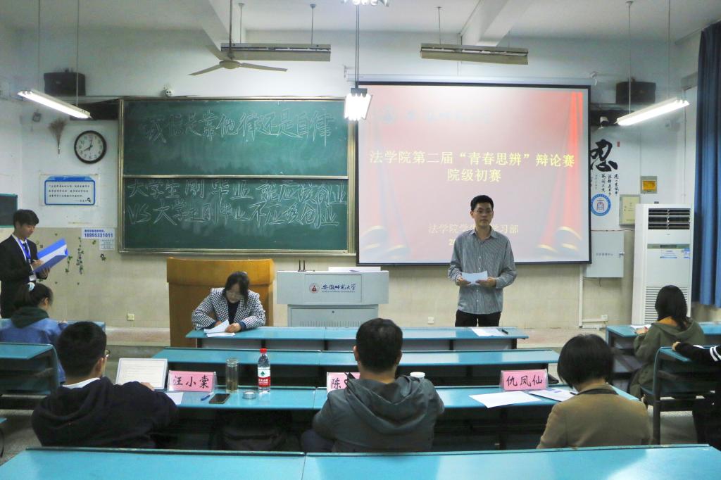 本次比赛采取“一对一”对抗辩论形式,共有开篇立论、双方对辩、总结陈词三个环节。本次比赛共有七组参赛选手。前三组围绕“诚信是靠他律还是自律”辩题展开辩论。各选手准备充分,对辩题精准理解,比赛时立论有据、陈词有力。辩论结束,评委对选手的临场表现予以肯定,同时指出辩论时暴露的逻辑瑕疵和语言表述问题。后四组选手围绕“大学生刚毕业就应该创业还是不应该创业”辩题展开激烈讨论,选手们引经据典,侃侃而谈提出己方观点。对辩时,选手们反应迅速紧抓对方漏洞,用敏锐的洞察力和条理清晰的驳辩将辩论推向高潮。总结陈词时,选手们用精炼的语言升华己方观点。比赛结束评委做总结点评,提示脱稿的重要性,指出选手应做到守辩和攻辩相结合、要以理服人,注重逻辑与思维,切勿过度渲染情绪,更要对突发情况做好预判。比赛共遴选十名选手角逐院级决赛。