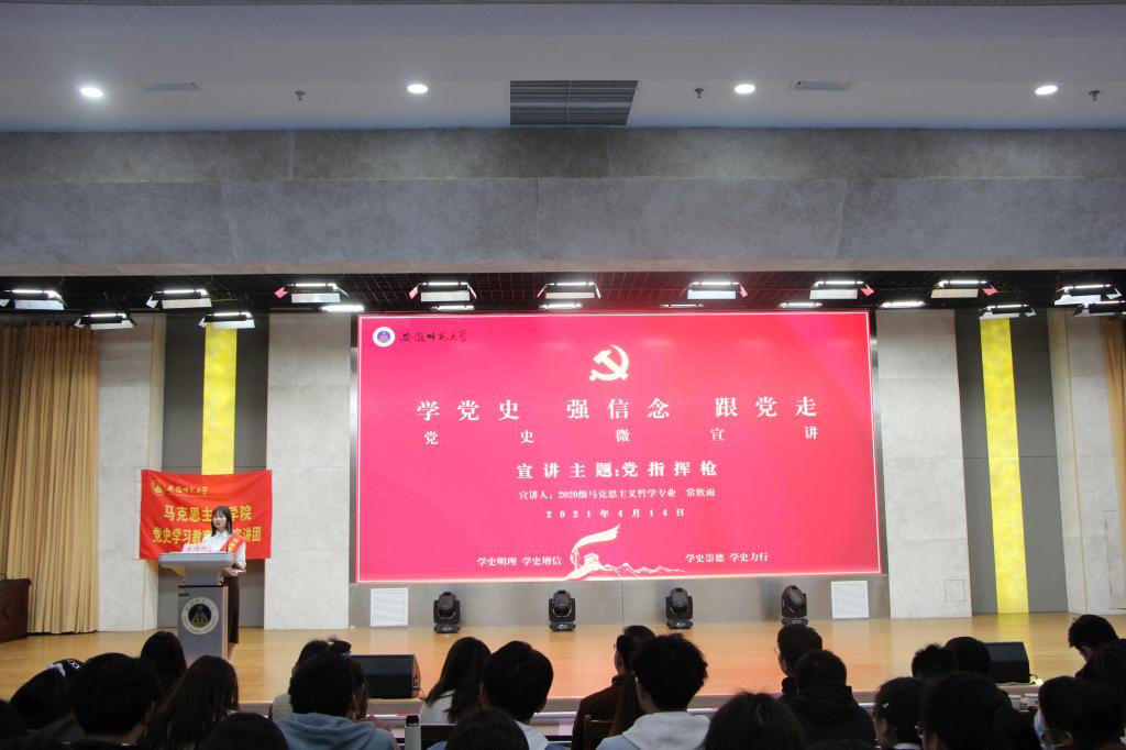 影片放映前,马克思主义学院党史学习教育宣讲人常欣雨借助微党课的形式,带领在场师生走进在党和工农红军发展史上有极其重要意义的1929年。她讲述古田会议召开的历史背景,诠释古田会议精神,倡导大家坚定革命信仰,弘扬红色精神。
