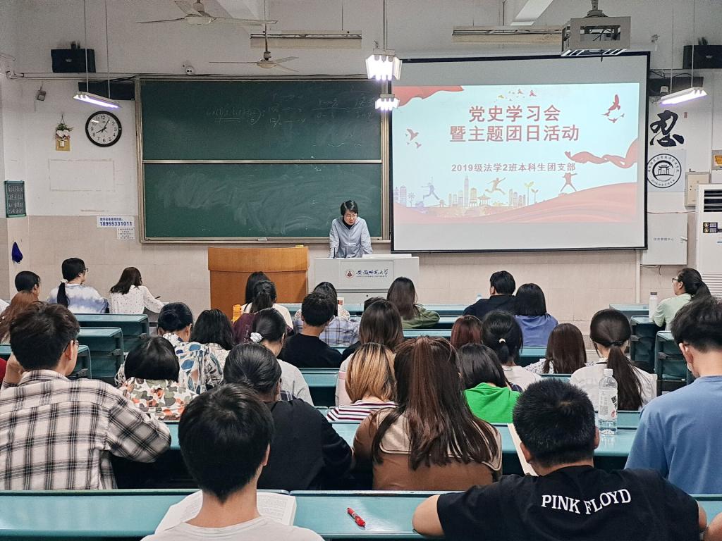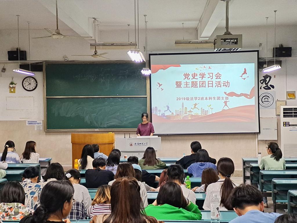 本网讯(bet36365路检测中心 李晨冉 李迎新)5月7日晚,bet36365路检测中心2019级法学2班党史学习日暨主题团日活动在行知楼2020101教室进行。活动由团支部书记王韦主持,学院团委书记王虹圆莅临指导。