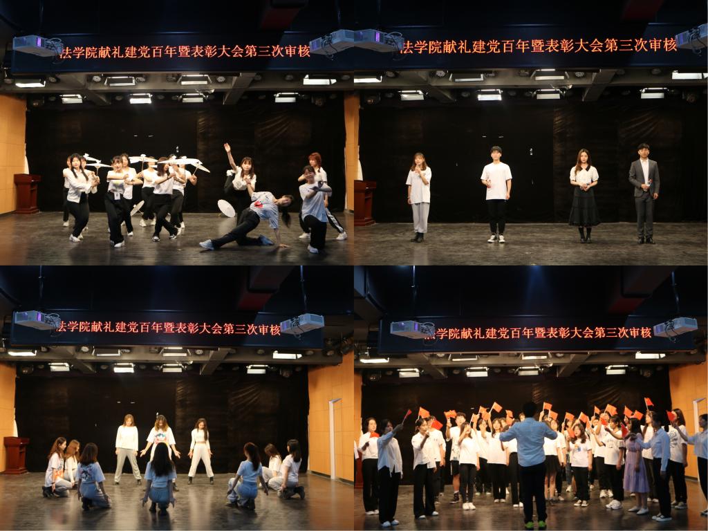 本次审核依照大会正式流程,包括颁奖和节目表演两项内容。古典舞《流光飞舞》表演后,进行第一轮优秀教师先进典型、优秀学生先进典型等先进个人表彰。串烧歌曲《少年行》、爵士舞《舞动青春》结束后进行第二轮优秀学生组织、各项比赛集体获奖代表的先进集体表彰。第三轮院本奖助学金表彰,在歌伴舞《生命之河》、朗诵《共话脱贫感党恩,昂扬奋进新时代》之后进行。大会审核以合唱《不忘初心》落幕。本次审核紧扣“建党百年”主题,从舞台站位、候场顺序、设备操控多方演练,力求呈现最佳舞台效果。审核中的各个节目日益纯熟,舞蹈类节目风格多样,各具特色;朗诵铿锵有力,情感饱满;合唱触动心弦,歌声嘹亮。