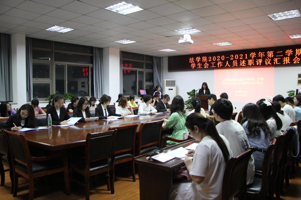 本网讯(bet36365路检测中心团委 王虹圆 孙香玉)6月8日,bet36365路检测中心于行政楼召开2020-2021学年第二学期学生会工作人员述职评议汇报会。校学生会主席团成员周腾飞受邀出席,团委学生副书记郭怡、团委委员黄雅倩、王思佳及各班级代表参与测评。院学生会主席团及各部门负责人到场参会。本次汇报会由桂杨主持。