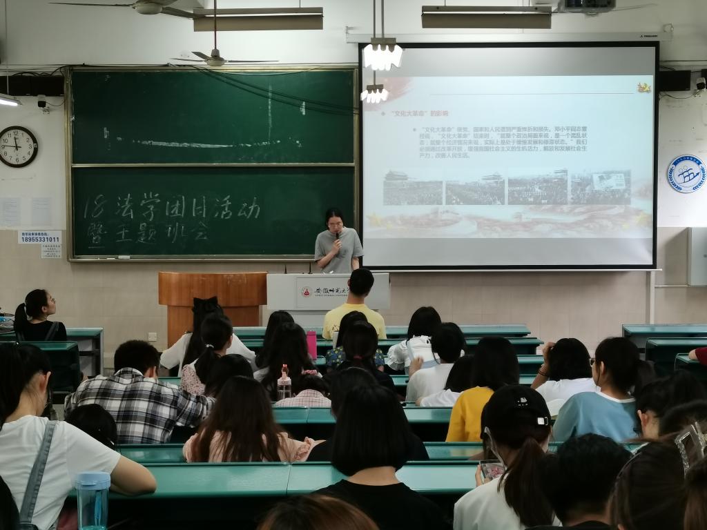 本网讯(bet36365路检测中心方琳、张楠楠)为响应学习党史、增强党性的号召,2018级法学专业于6月9日上午在教学楼2020201教室开展学习改革开放史主题团日活动。2018级法学专业辅导员张楠楠出席,中共预备党员徐静宜、张婉倩领学,团支书祝维格主持,2018级法学专业全体同学参加。
