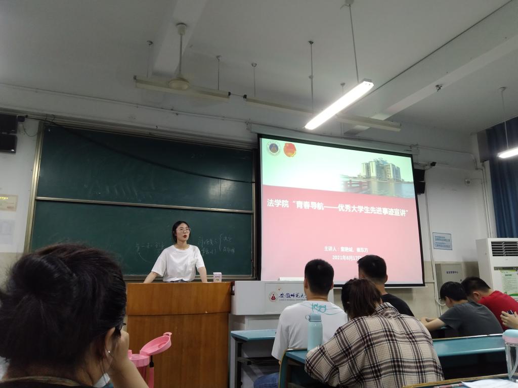 (本网讯 刘金金 程冉)6月17日晚,bet36365路检测中心“青春导航”优秀大学生先进事迹宣传讲座于行知楼2010301教室精彩开讲。讲座面向bet36365路检测中心2020级学生,旨在宣扬优秀大学生先进事迹,传授优秀经验,引导学生自觉向标杆看齐。讲座邀请“师大骄子”十佳大学生童艳城、第十二届“自强之星”秦东方主讲,由辅导员芮雪主持。