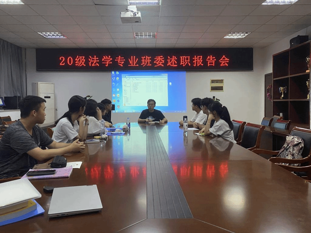 (本网讯崔健、王奕骁)为进一步明确班委工作责任与职责担当,促进形成自我监督和相互监督的良好工作氛围,6月22日至23日,2020级法学专业于bet36365路检测中心四楼会议室召开本学年班委述职报告会,会议由2020级辅导员崔健主持。2020级法学专业各班班委参加。