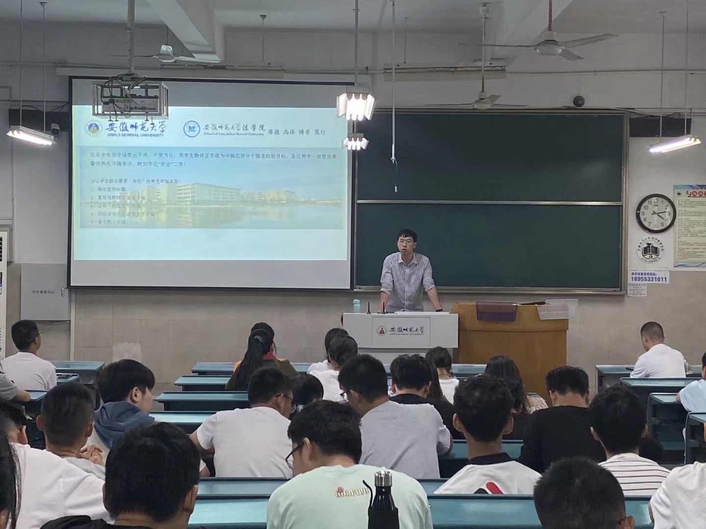 “疫情防控第一课”——崔健要求同学们结合疫情防控常态化的相关要求,认真落实晨午晚检制度,严格学生缺课、缺勤“零报告”和校园出入信息登记、离芜审批等相关制度。崔健号召广大学生做“守护者”,担使命、保安康,切实推进疫情防控常态化。