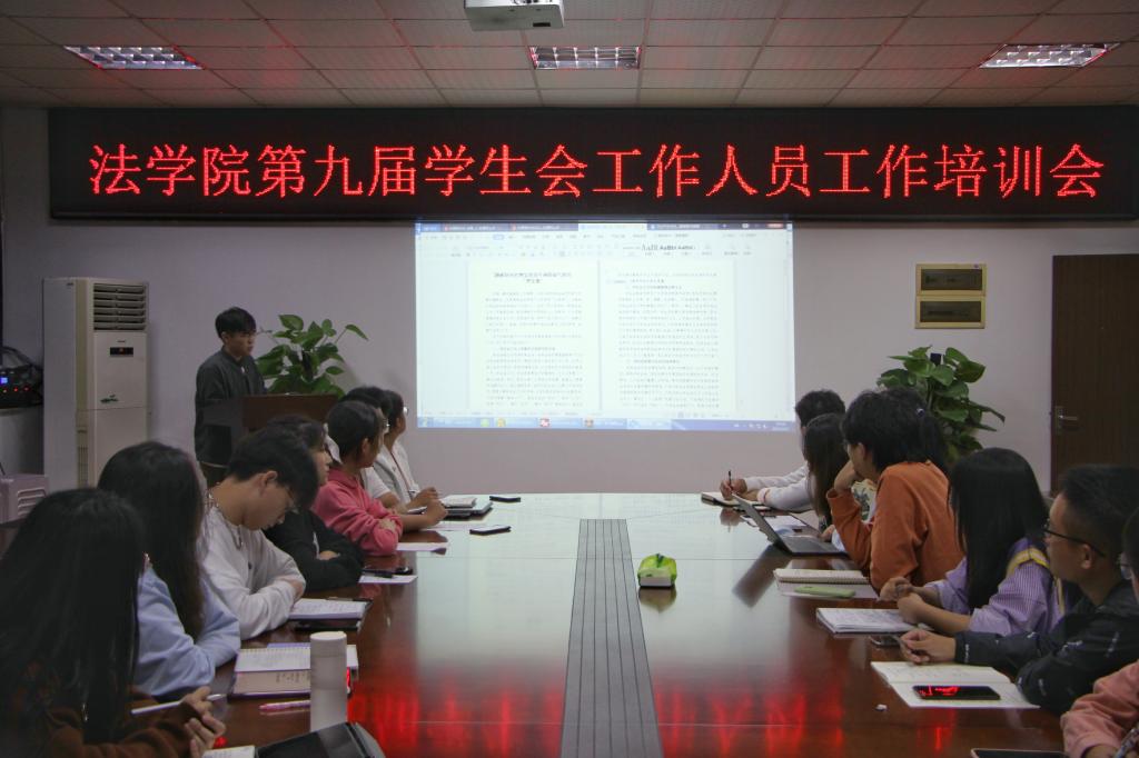 本网讯(bet36365路检测中心团委 王虹圆 周楷芸)为贯彻落实全国学联印发《关于学联学生会工作人员改进作风服务同学的若干规定》,10月7日晚,bet36365路检测中心于行政楼召开第九届学生工作人员培训会。学生会主席团成员与团委学生会各部门负责人参与会议。本次会议由学生会主席史展主持。