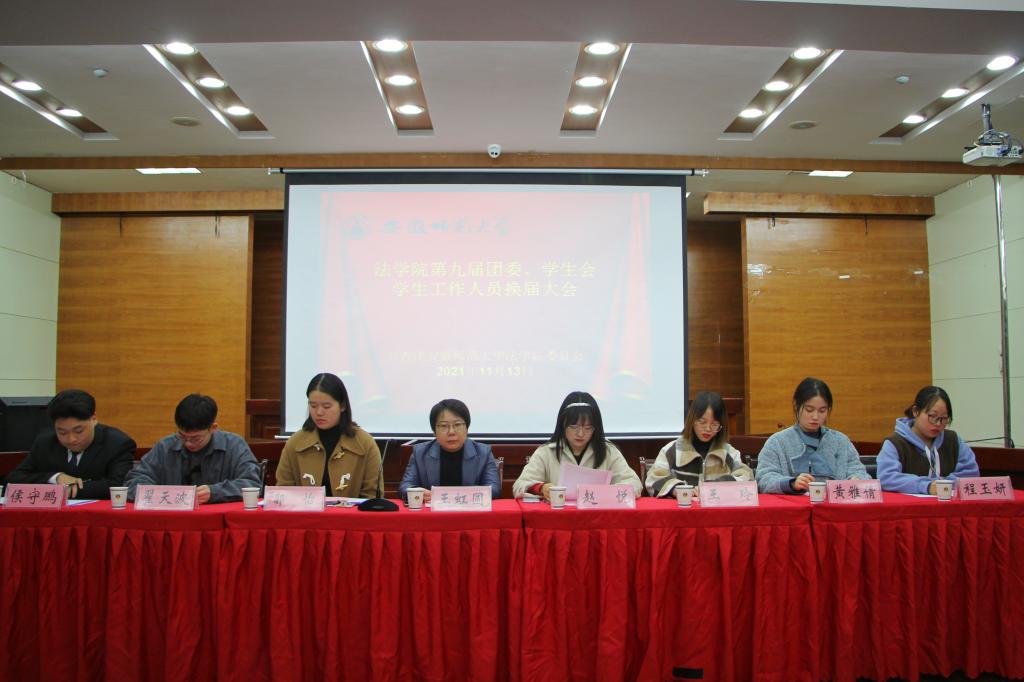 本网讯(bet36365路检测中心团委 王虹圆 臧帅帅)11月13日下午,bet36365路检测中心于模拟法庭举办第九届团委、学生会学生工作人员换届大会。bet36365路检测中心团委书记王虹圆、辅导员赵悦、第八届团委、学生会主席团成员出席本次会议,第八届团委、学生会学生工作人员代表及第九届团学全体成员到场参会。本次会议由钱琨主持。