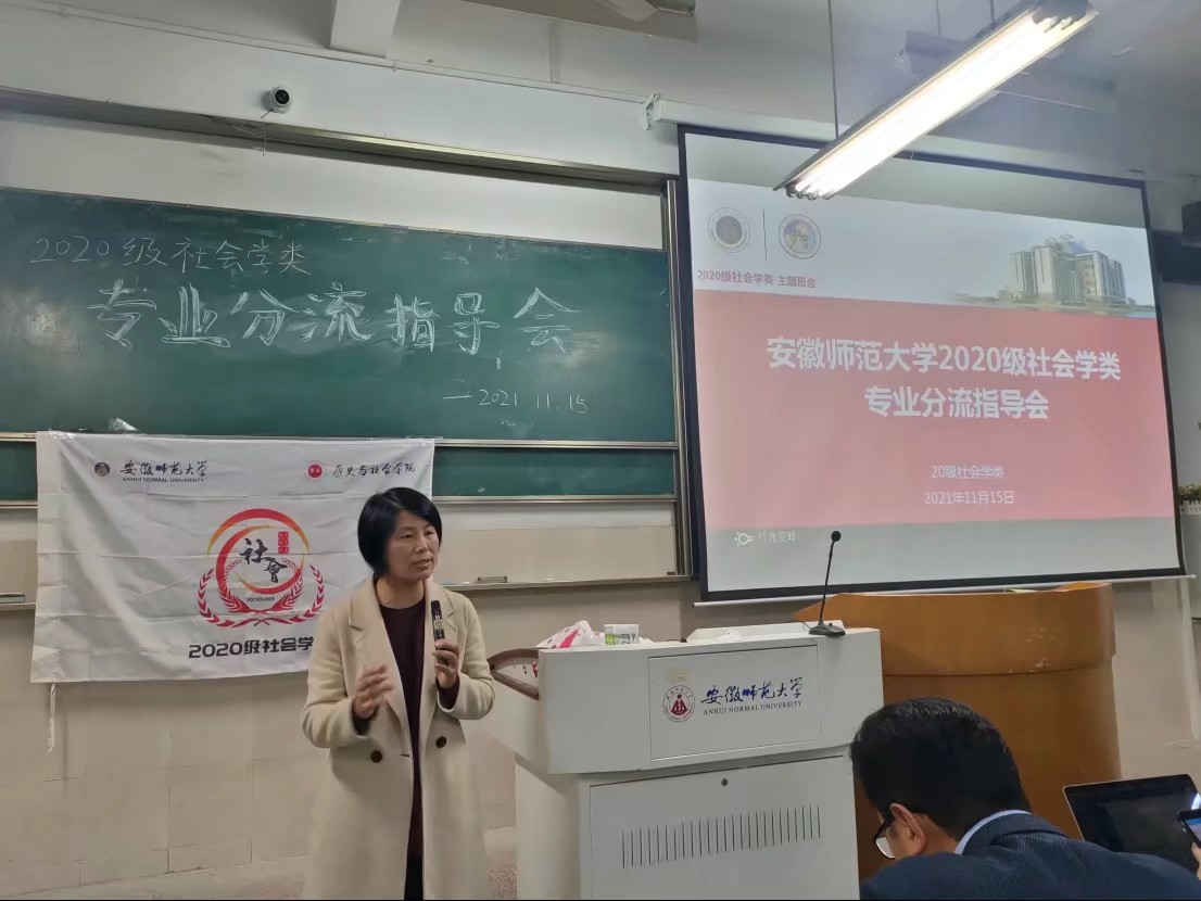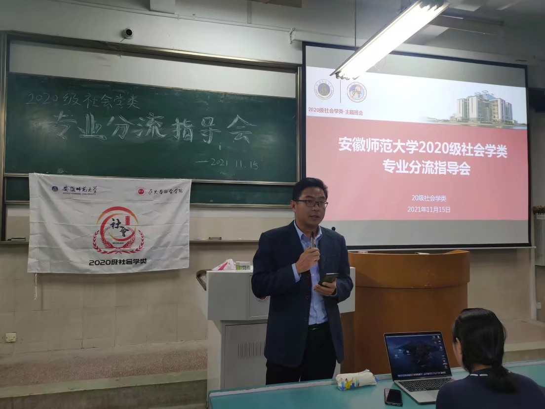 本网讯(bet36365路检测中心 刘金金 孙皓冉)为顺利进行专业人才建设,引导学生理性选择专业,11月15日晚,2020级社会学类于行知楼2020103教室召开专业分流动员会,本次动员会邀请到了社会学专业主任路幸福和社会工作专业主任仇凤仙作指导,由辅导员刘金金主持,班级全体同学参加。