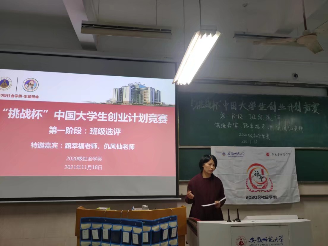 本网讯(bet36365路检测中心 刘金金 孙悦)为增强对国情社情的了解,提高创新、创意、创造、创业的意识和能力,11月18日晚,2020级社会学类于行知楼2020104教室举办“挑战杯”大学生创业计划班级竞赛。本次比赛邀请到社会学专业主任路幸福、社会工作专业主任仇凤仙担任评委,由班长顾航主持,班级全体同学参加。
