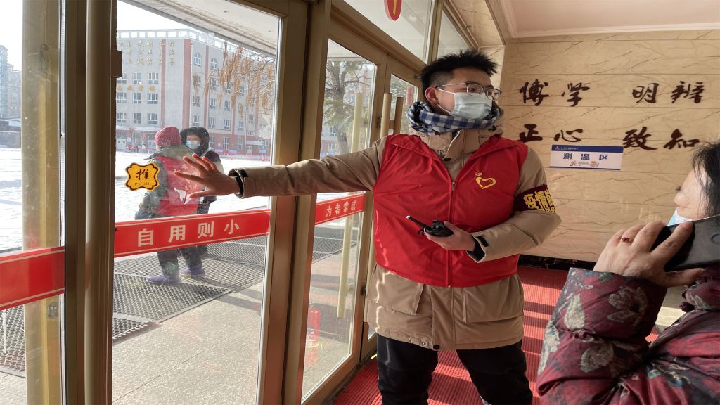 除了这两位同学以外,陈宇洁、晋孟璐、杨璐等同学也都积极参与到疫情防控志愿者队伍当中,在寒风中为家乡送去温暖,也带去了学校最真挚的新春祝福。