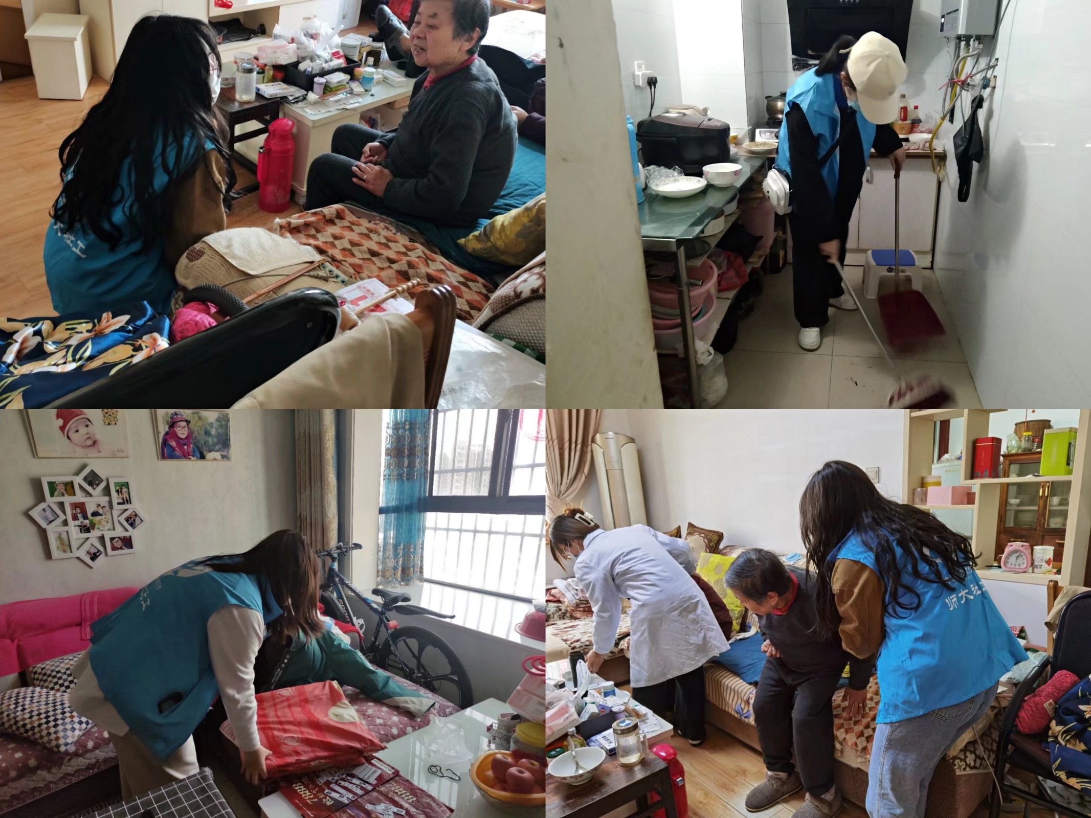 志愿服务队的队员首先分成六组,分别前往不同的家庭进行慰问义诊。这些家庭都是社区提前联系好的低保、孤寡老人家庭,同学们礼貌敲门后介绍了身份,热情主动地帮助老人们打扫卫生、做家务活,还有表演节目和唠家常的,以各种方式为老人们送去温暖和祝福。