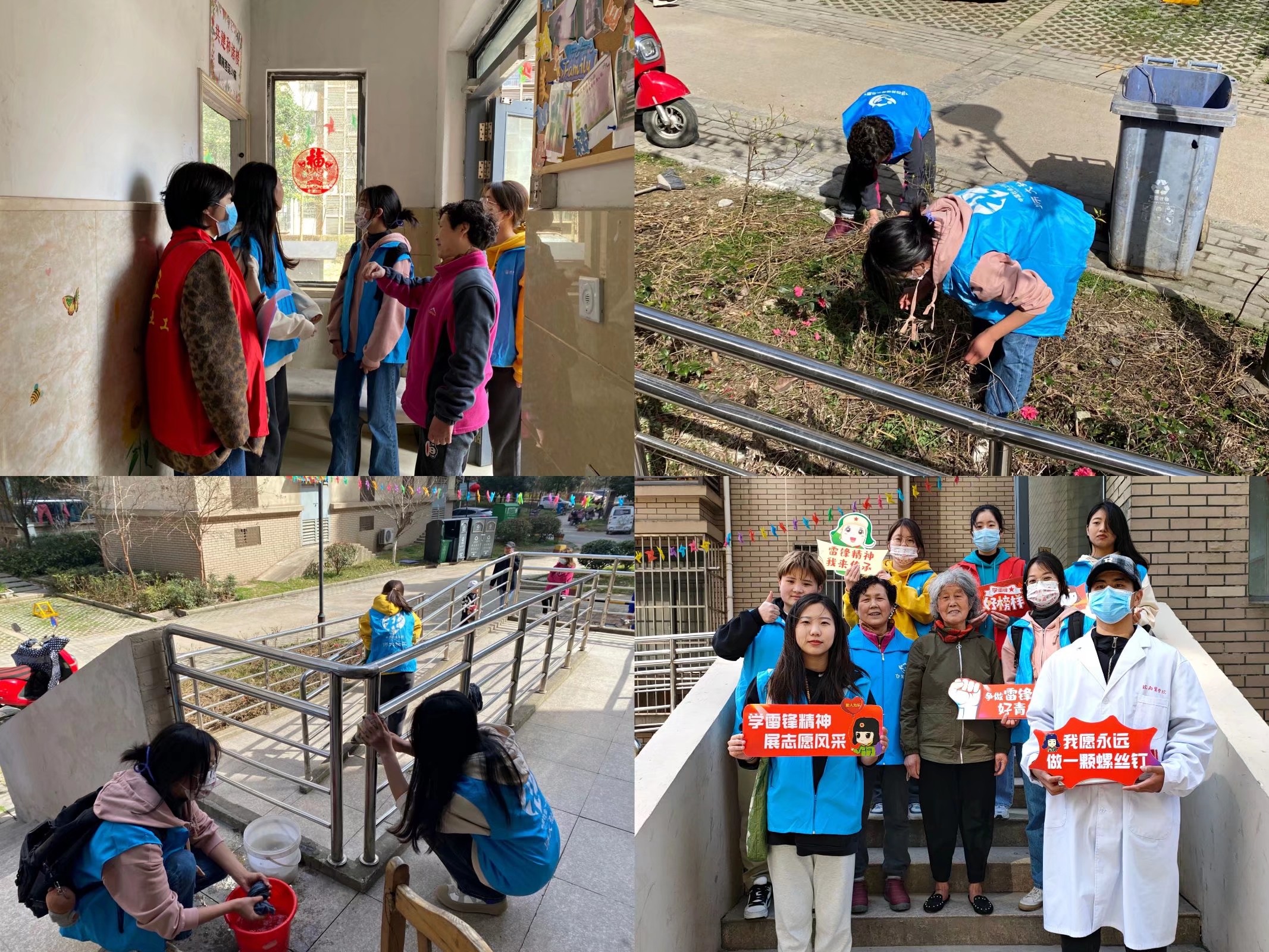 除了老人家中,同学们还去往楼栋帮忙清洁卫生。据介绍,儒林西苑每栋楼都有一位居民自己选举出来的楼长,专门负责楼栋内的各种日常工作。志愿者们跟随楼长的介绍在周边进行了扫地、擦栏杆、情理花丛等多项卫生工作,为小区环境建设贡献了自己的力量。