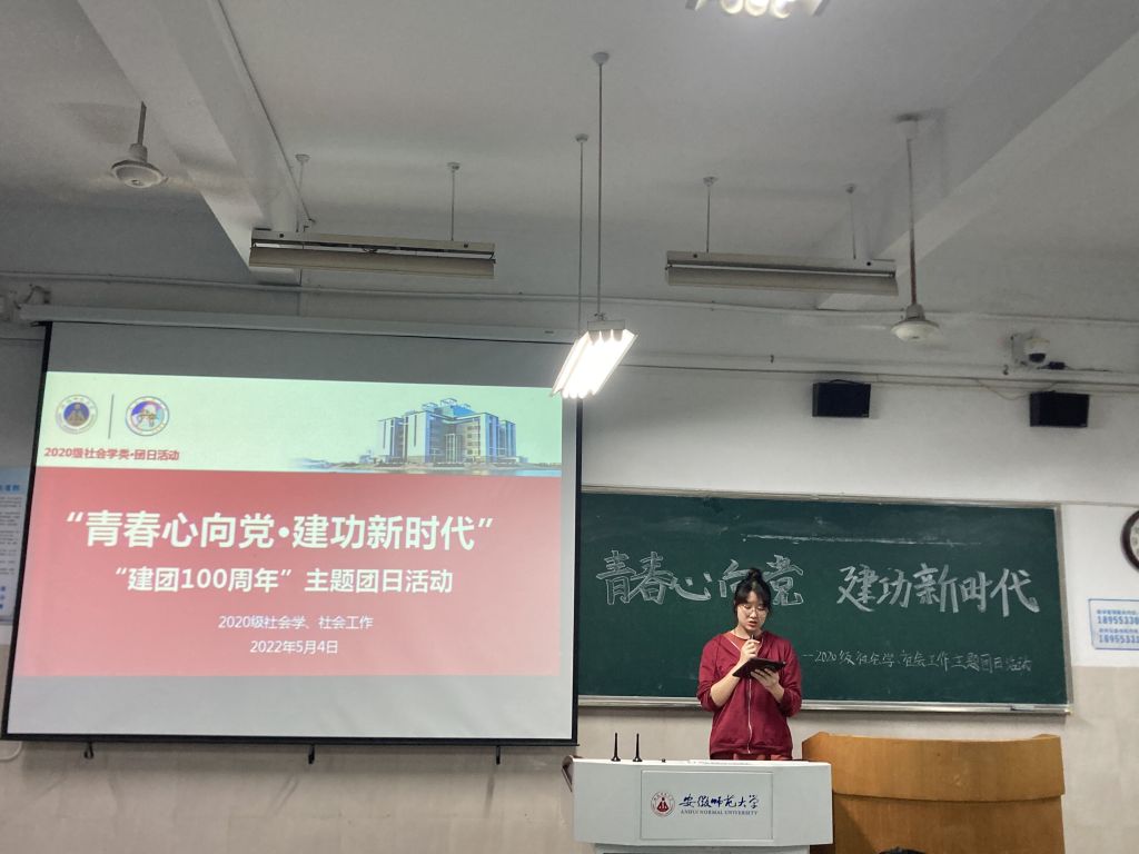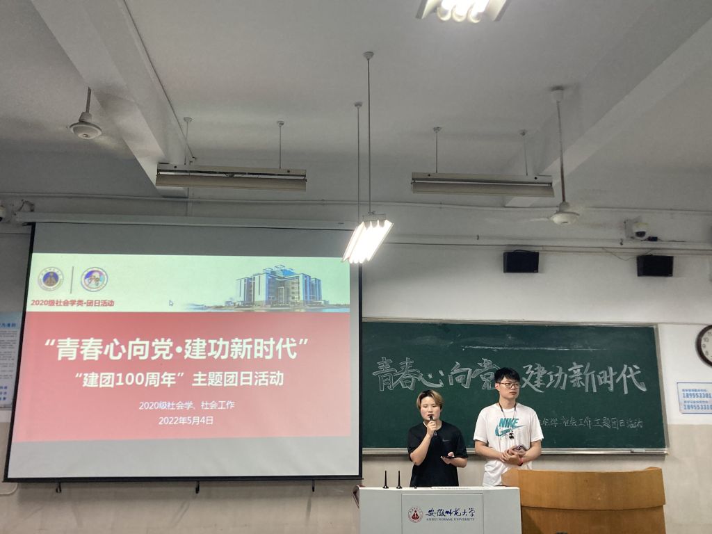 本网讯(刘金金 孙悦)为感悟百年团史,凝聚奋进力量,5月4日晚七点,2020级社会学、2020级社会工作团支部于行知楼2020402教室开展“青春心向党·建功新时代”建团100周年主题团日活动。本次活动由团支书陶子、顾航主持,2020级社会学类全体同学参加。
