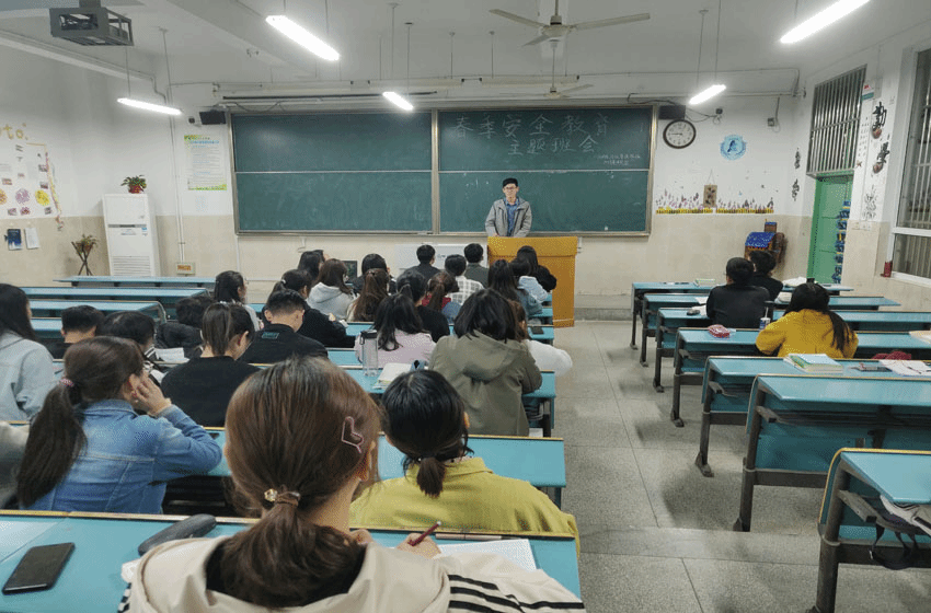 张喆同学首先给大家介绍了几类春季必须要防范的安全隐患并提出了相关建议。他说大家一定要做好日常个人卫生工作,寝室要多通风,加强锻炼身体,预防禽流感等传染病。同学们在宿舍要谨慎用电,严防明火等。关于假期离校问题,大家要随时给家长发送定位,同时要注意自身贵重物品的保管,防盗防骗。