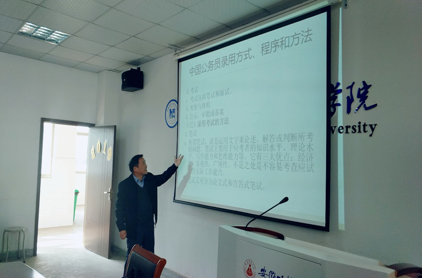 为了同学们能更好地了解公务员考试,提高同学们对考公务员的认知和能力,职业能力发展研究会于3月17日在bet36365路检测中心行政楼四楼会议室开展会员培训大会,并特邀王义德教授为大家讲解公务员考试相关要点。