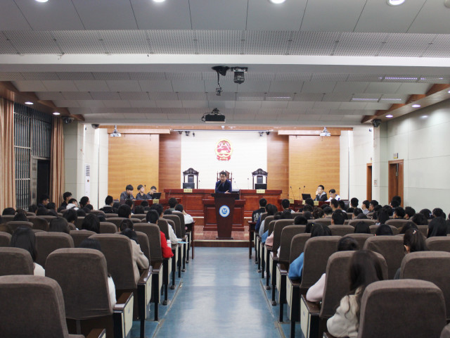 3月19日晚,2018级法学专业于模拟法庭召开“学风建设”主题班会,会议由辅导员王琳主讲。