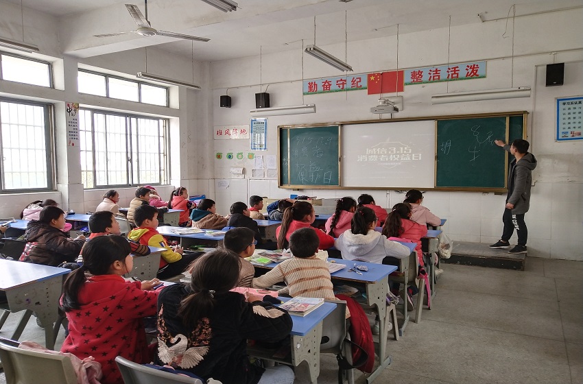 马淑娴于中学七年级3班主讲,阮宇婷、胡稳柱分别在小学五年级2班和3班进行授课。阮宇婷、胡稳柱和马淑娴均以介绍“3·15消费者权益保护日”为中心,以提问的方式向学生们宣传法律知识。阮宇婷利用道具吸引孩子们回答问题,孩子们也积极响应,踊跃举手,在保护自身利益中,她鼓励孩子们讲出一些身边的事例,告诉他们维权的方法。胡稳柱则向孩子们介绍了权益法所包括的几个主要消费者权利,并向孩子们讲解了如何利用权益保护法维护自身利益。马淑娴简单介绍了3·15消费者权益保护日的来源、历史以及设立原因,列举诸多侵权事例,与孩子们进行趣味互动,孩子们也热情高涨,积极应和。