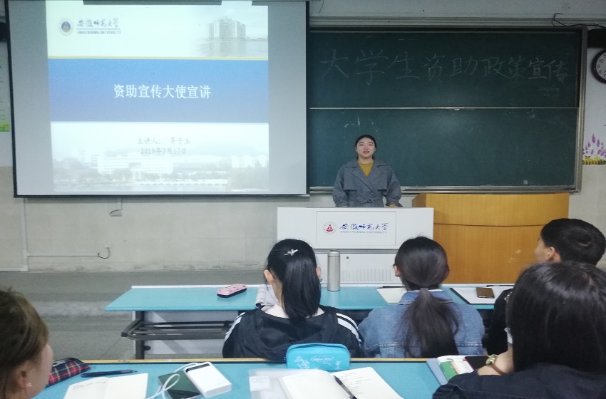 3月17日晚, 2018级行政管理专业在行知楼2010304教室开展第七期“导生交流会”。本次交流会主题是大学生资助政策宣讲,2016级法学二班陈沁瑶、2016级行政管理专业莘子玉作为校“学生资助宣传大使”受邀进行宣讲。交流会由班委张喆主持,18行管全体同学参与其中。