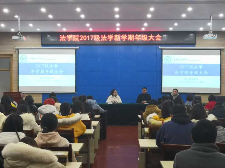 新学期,新气象。2019年2月25日下午,2017级法学专业在圆形报告厅召开了新学期年级大会,bet36365路检测中心党委副书记、2017级卓越司法班辅导员王少仁,2017级法学专业辅导员李琛、贾文成参加会议,会议由王少仁书记主持,2017级法学专业全体同学参与此次会议。