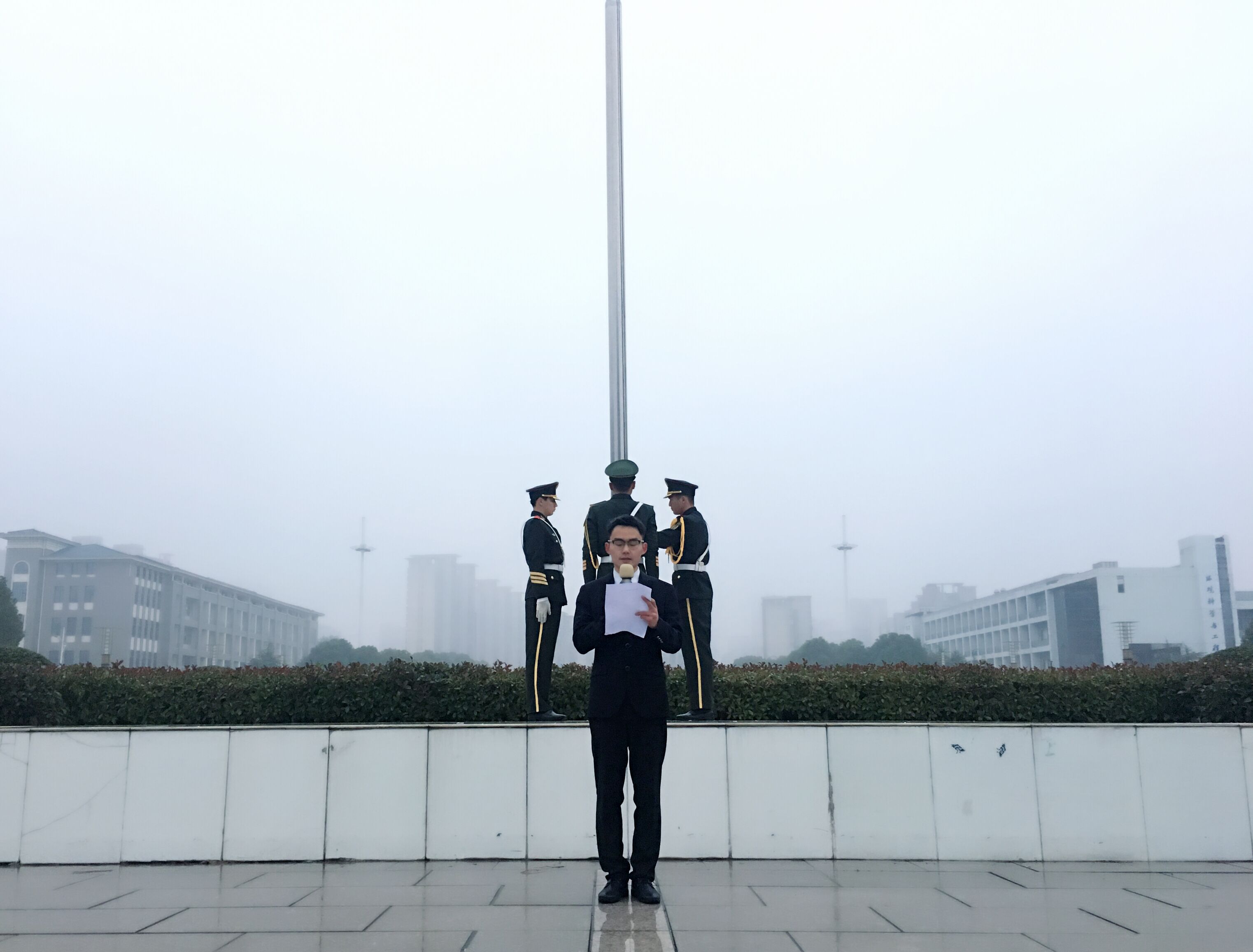 仪式之后,18级行政管理的方杰同学上台作了国旗下讲话。他讲话的主题是“我们的征途是星辰大海”,他从不同时代人们的理想信念出发,为大家证明了中国已然是一幅大国气象。出生在这个全新的时代,每个人都是弄潮儿,都将在中国梦的蓝图上书写人生华章。全体同学深受鼓舞。