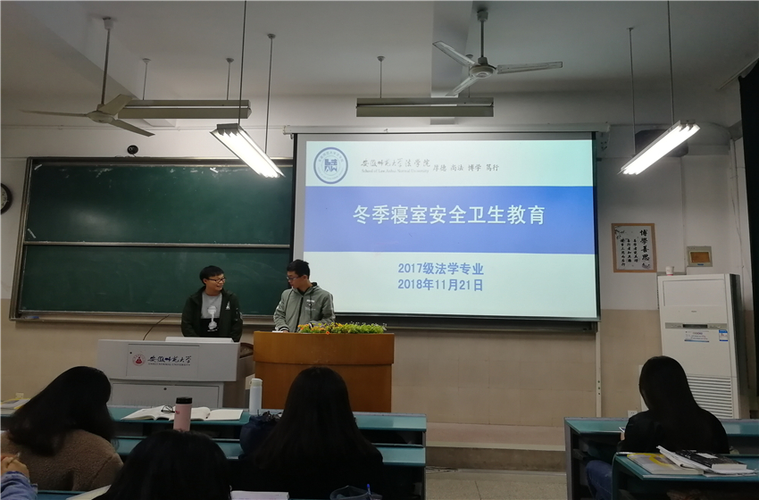 11月21日上午,17级法学2班于行知楼2020103教室召开冬季寝室卫生安全教育暨课堂纪律主题班会,会议由班长邹成广主持,2班全体同学参与。