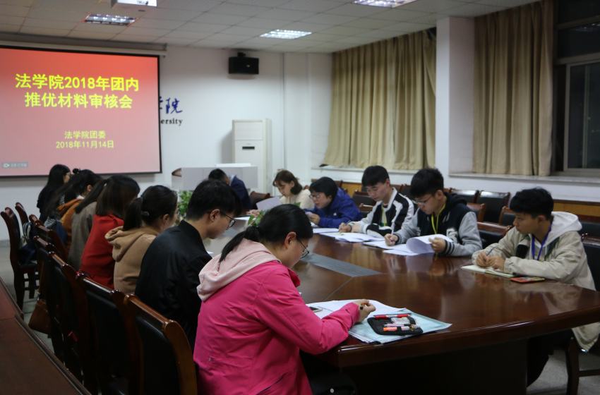 11月14日晚,bet36365路检测中心在行政楼四楼会议室召开了学院2018年团内推优材料审核会,院团委书记王虹圆,院学生会主席兼团委学生副书记张沥丹出席会议,团委组织部全体成员及17、18级各班团支书参加会议,会议由组织部部长张均瑶主持。