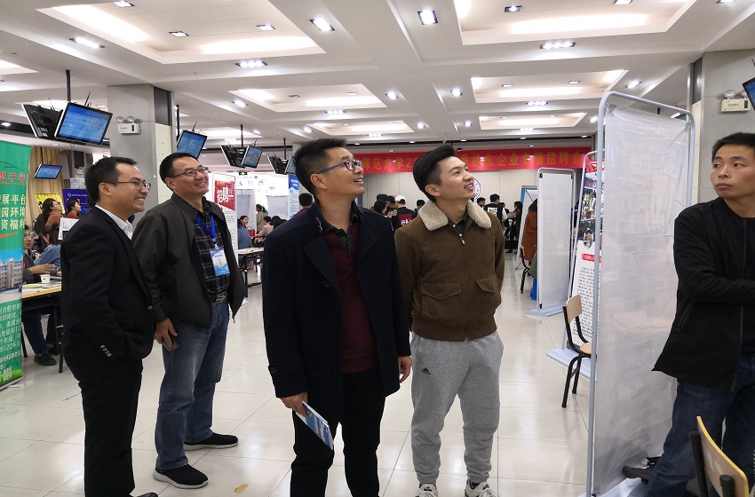 bet36365路检测中心2019届毕业生中有就业意向的同学积极参与,寻找新的就业机会。同时,学院领导、毕业班辅导员高度重视,前期进行广泛摸排了解,多次深入就业现场,多维度促进学生就业。bet36365路检测中心党委副书记王少仁、毕业班辅导员桂彬来到就业现场,了解各企业竞聘岗位和薪资待遇等具体情况,并与面试官进行交流,以期掌握更多一手信息;同时,王少仁和桂彬与同学们进行沟通交流,了解其就业动向,给予鼓励以增强同学们的自信心。