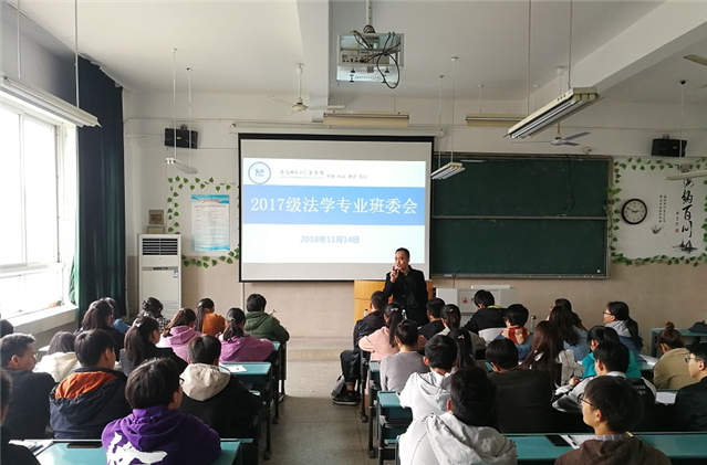11月15日下午,2017级法学专业辅导员陈兴宇老师在行知楼2020304教室召开了2017级法学专业班委培训暨工作布置会,全体班委会议。