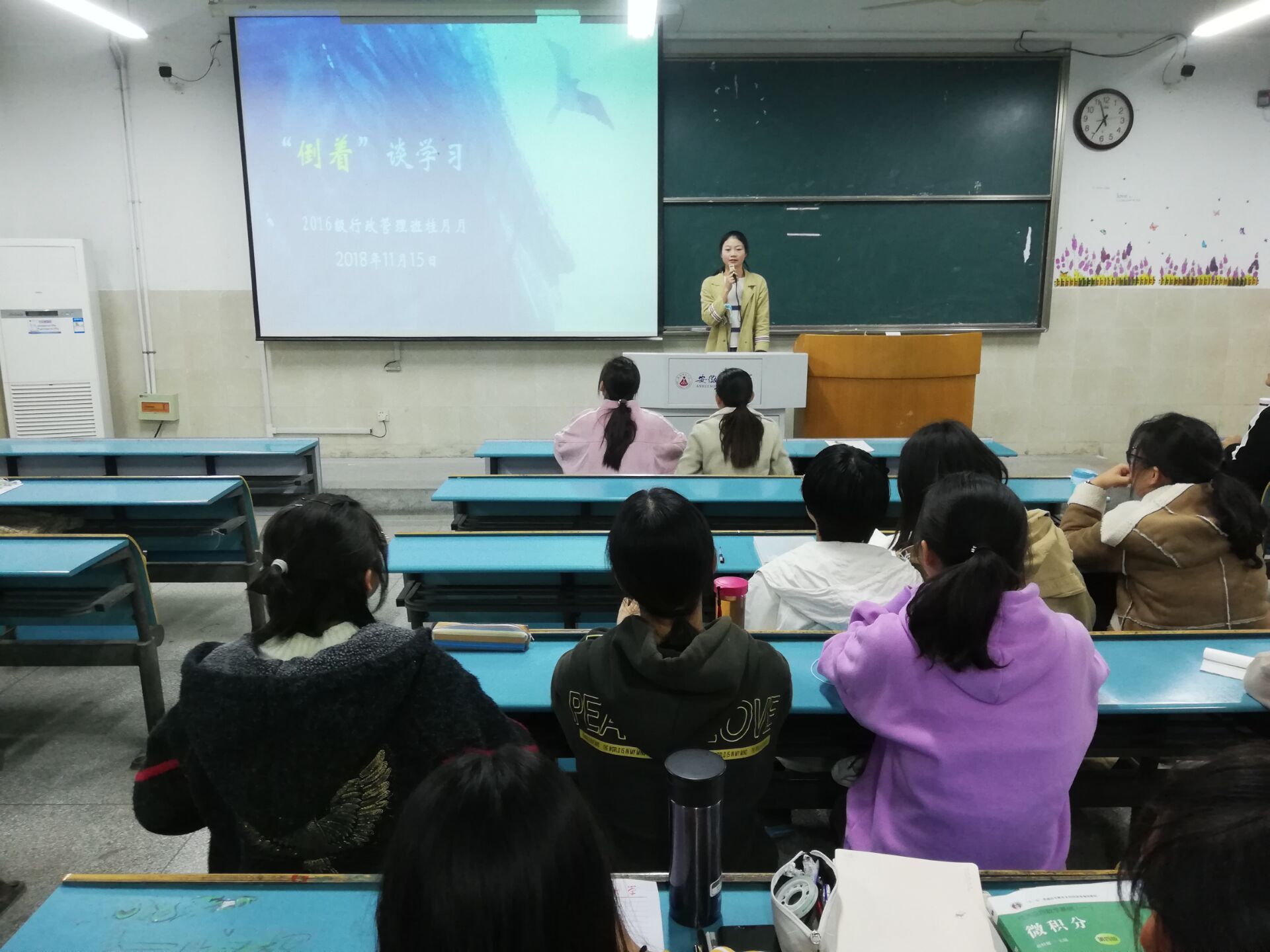 非学无以广才,非志无以成学。为提高学生的学习热情,帮助同学们更好地投入大学生活,11月15日晚,2018级行政管理专业在行知楼2010304教室举办第一期导生交流会。本次交流会邀请了2016级导生桂月月和汪能焕为同学们分享“学习方法和技巧”,班级全体成员参与,学习委员王鸽鸽主持。