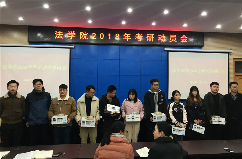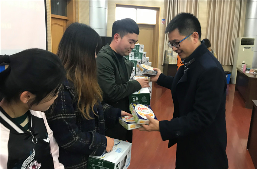 最后,王少仁和严宏为考研学子发放牛奶等慰问品,给考研学子加油鼓劲。同学们心情激动,反映热烈,表示一定不会辜负领导老师们的期待,努力学习,坚持不懈,争取在取得令人满意的成绩!(文/图 张楠楠)