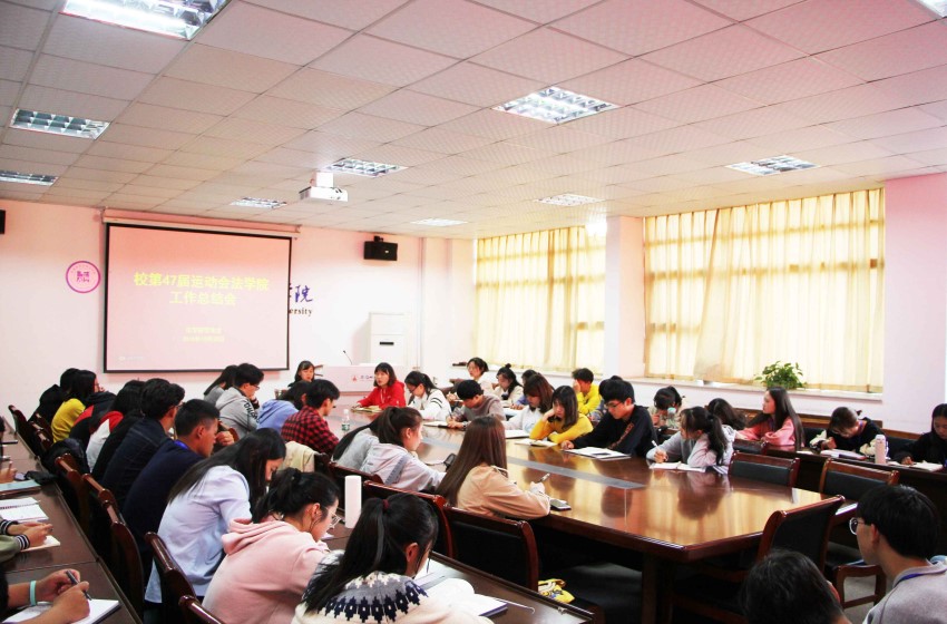 10月28日下午,bet36365路检测中心在行政楼四楼会议室召开校第47届田径运动会工作总结大会。院团委书记王虹圆出席会议,院学生会全体成员共同参加。此次会议由院学生会主席张沥丹主持,
