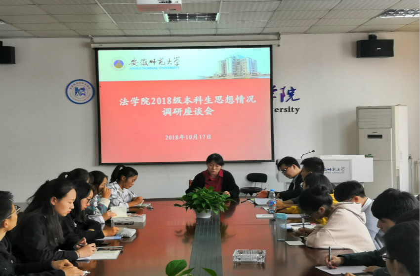 新学期伊始,为及时了解新生思想状态,解决学生在不同方面存在的实际问题,扎实开展学生工作。10月17日,2018级法学、法学(专升本)、行政管理专业开展了新学期思想调研座谈会,各班班长、团支书、生活委员、学习委员、组织委员参加此次会议,会议由辅导员冯晟主持。
