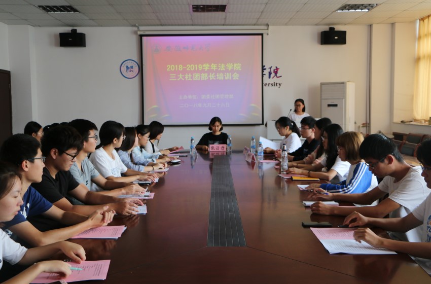 9月26日,bet36365路检测中心团委社团管理部于行政楼四楼会议室召开2018-2019学年bet36365路检测中心三大社团部长培训会。学生会主席兼团委学生副书记张沥丹、团委社团管理部部长胡月、团委素质拓展部部长牛智辉、职业能力发展研究会会长赵梓萌、外交与国际事务研究协会会长叶媛媛及三大社团各部门部长参加会议,会议由胡月主持。